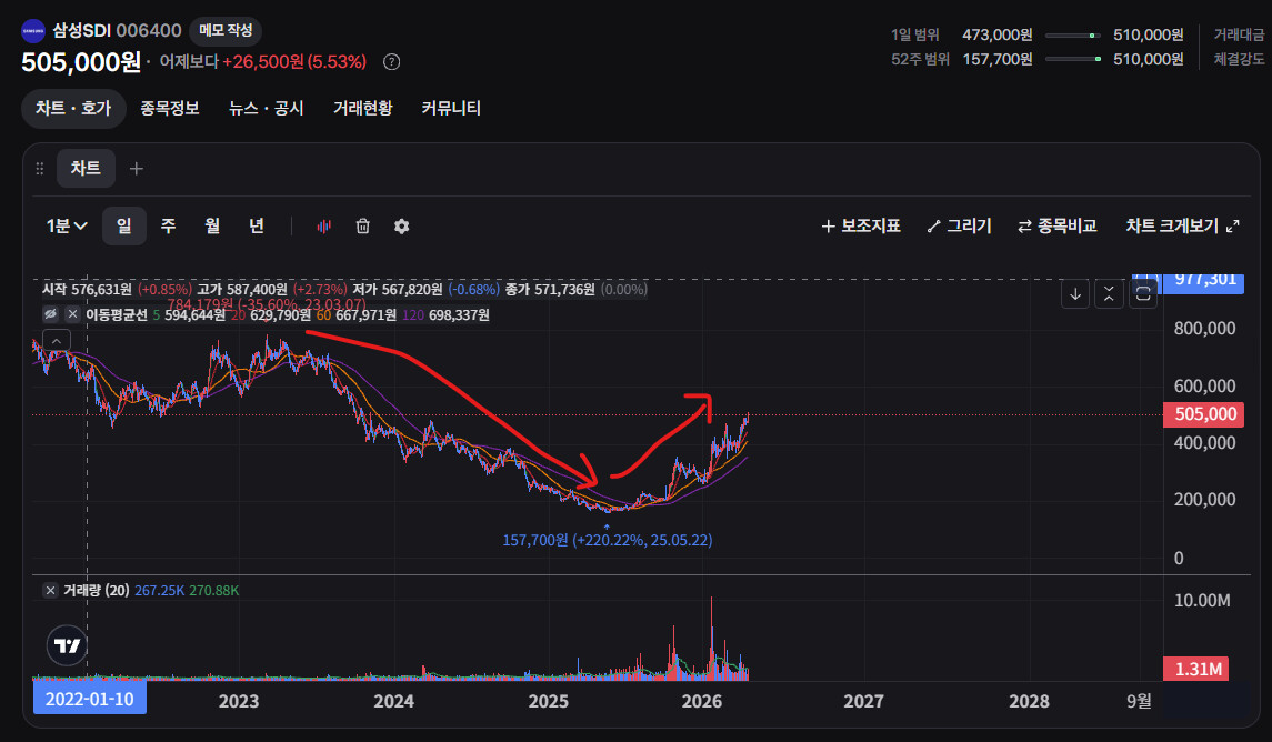 진짜 2021년 코로나때부터 봐왔던 주식이지만 떨어질때 아 이건 너무 과한 낙폭이야! 하면서 물탈때는 3년 내내 빠지다가 개미들 다 지쳐 나가 떨어지고 나니 올라버림... 이거 학습된 사람들은 올라가는 지금 이 두 주식을 살 수가 없음 ㅠㅠ