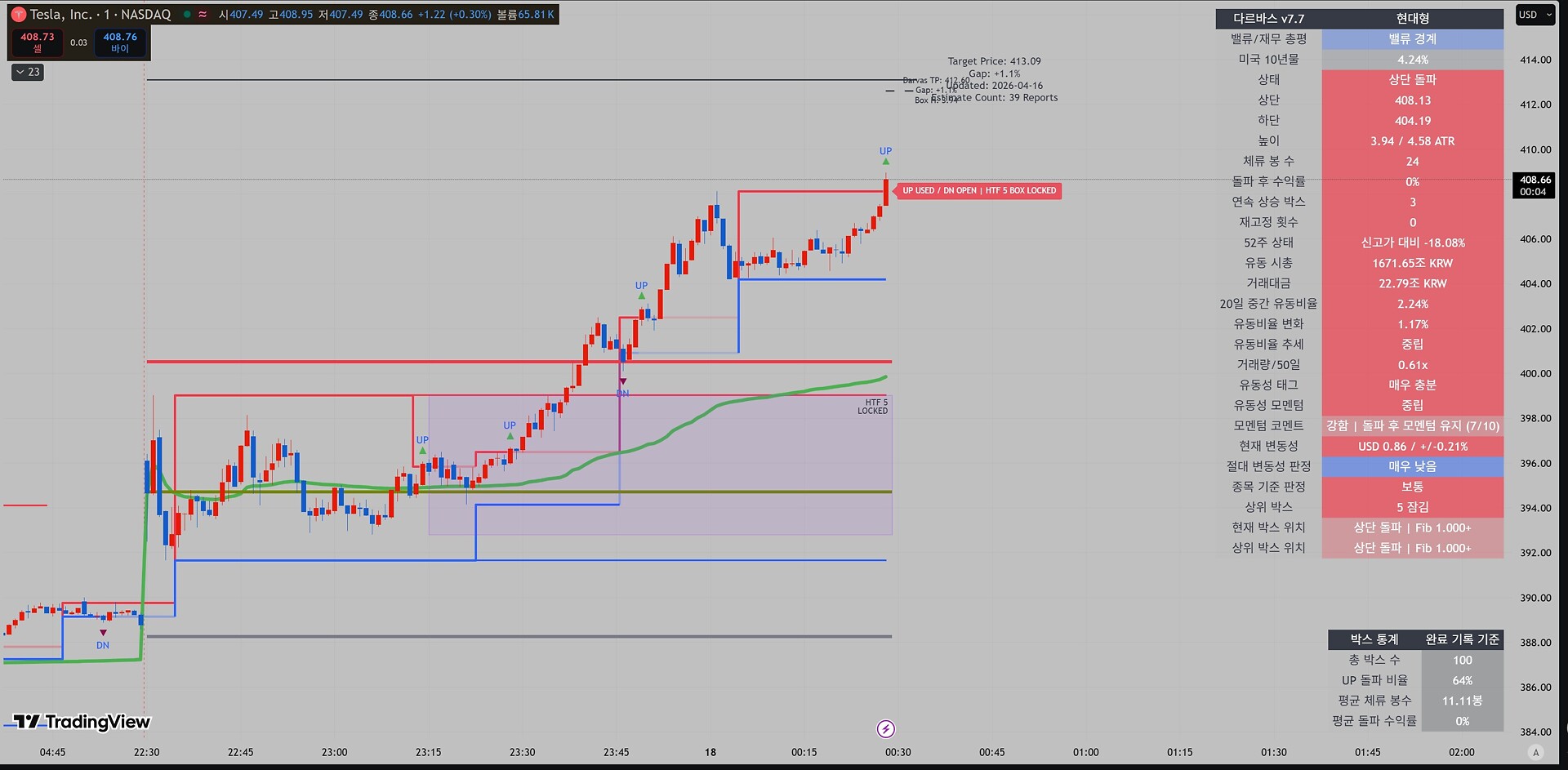 $408 돌파하면 쭉쭉 갈 것 같은데 망설이네...ㅎ