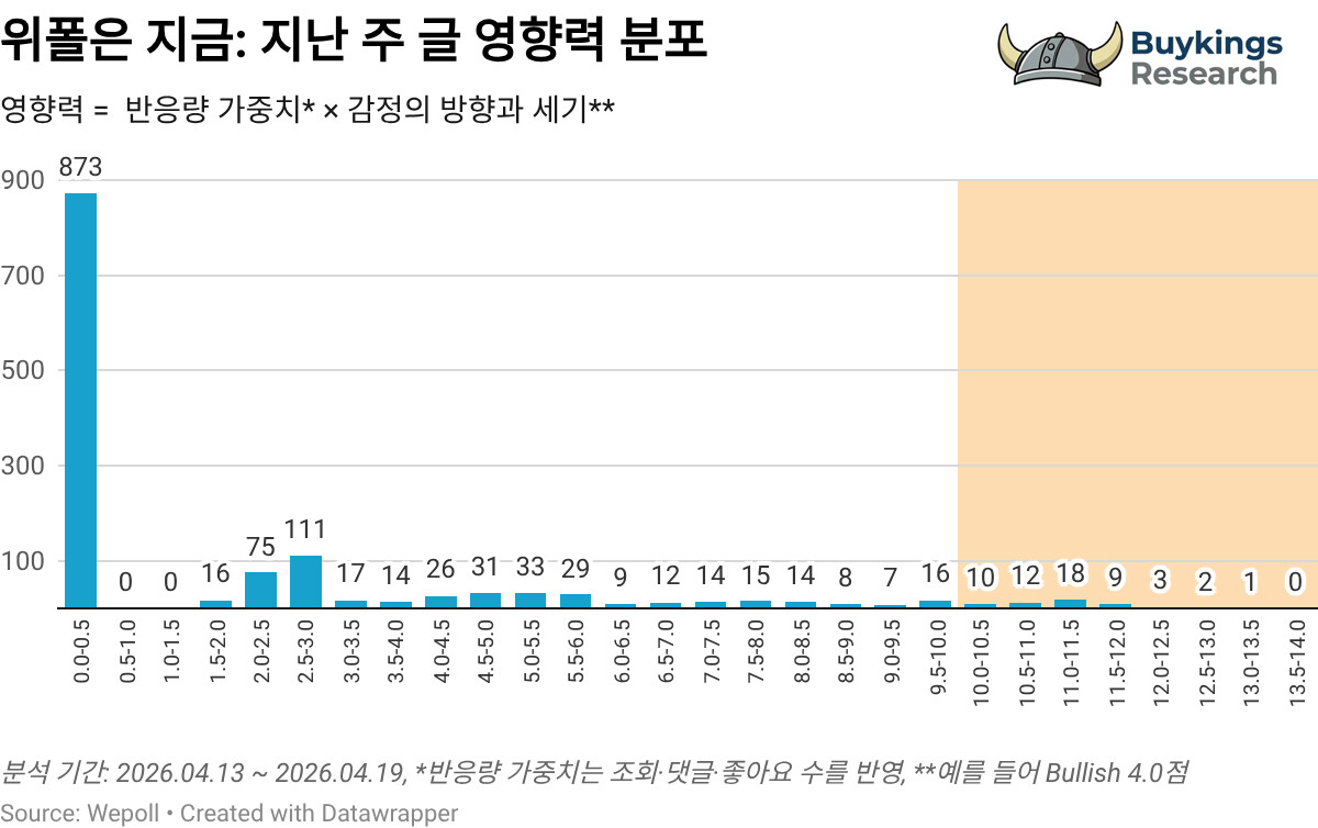 • 약한 글이라도 위폴러들이 시끌벅쩍 대화를 나눈다면 영향력이 커질 수 있습니다.