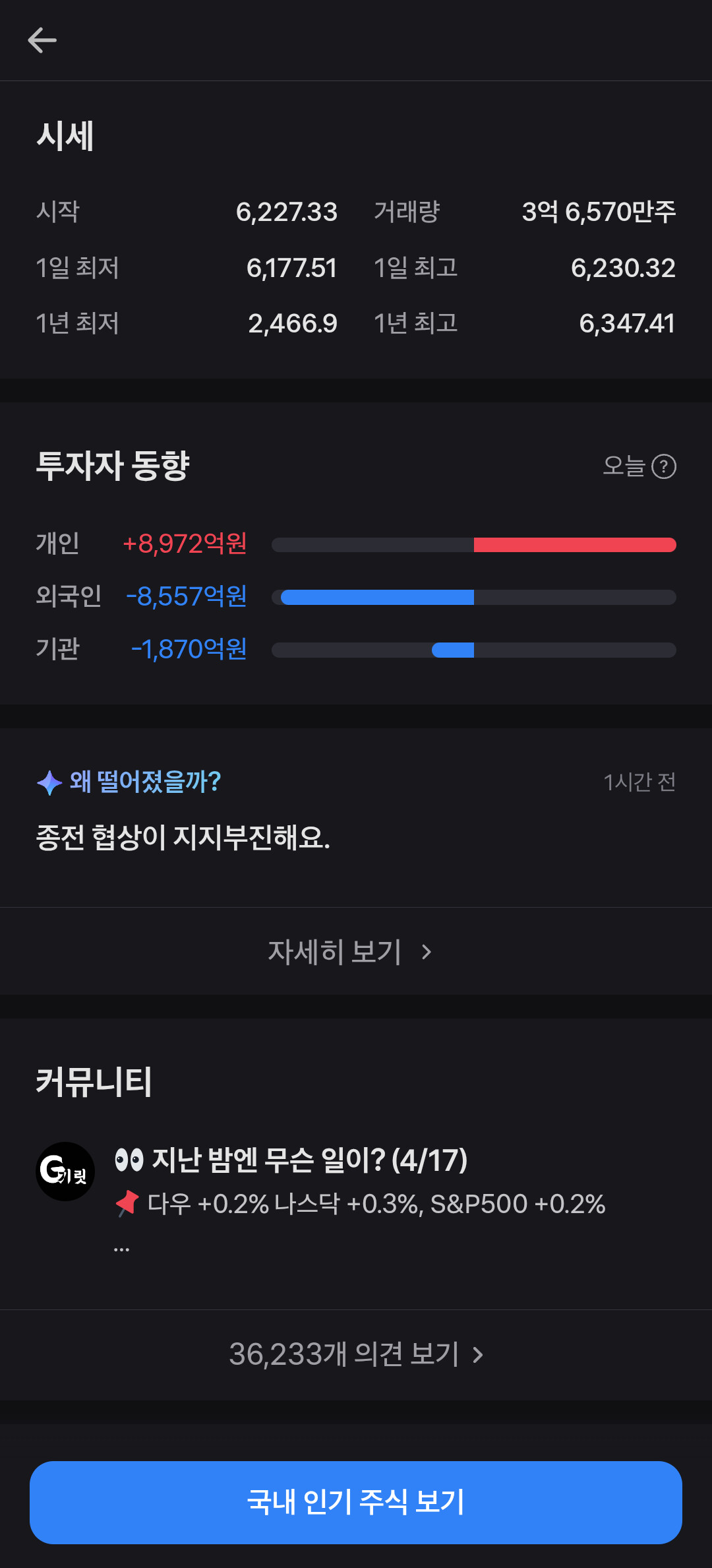 한에 낙폭이 과한데