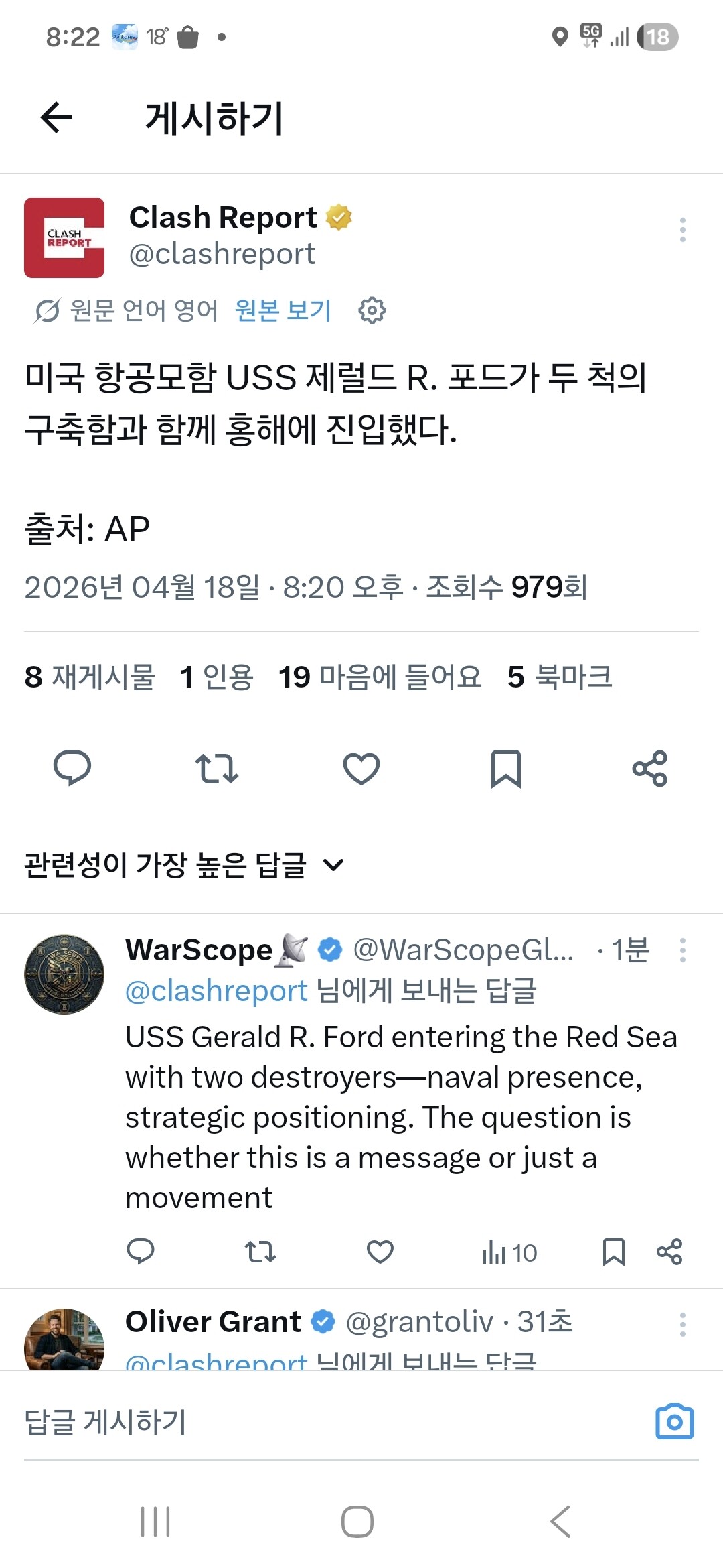 미 항모 홍해진입