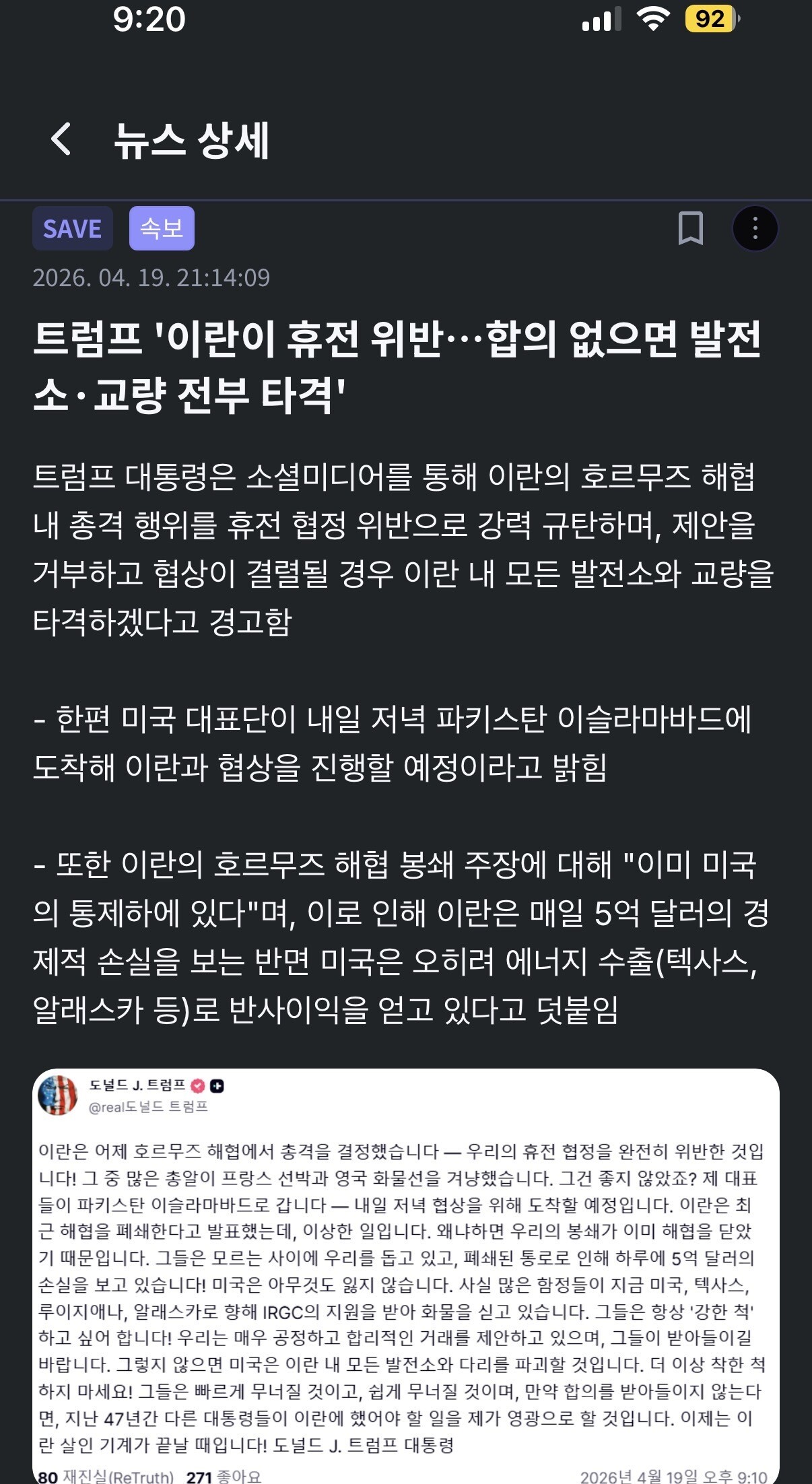 트럼프 '이란이 휴전 위반…합의 없으면 발전소·교량 …